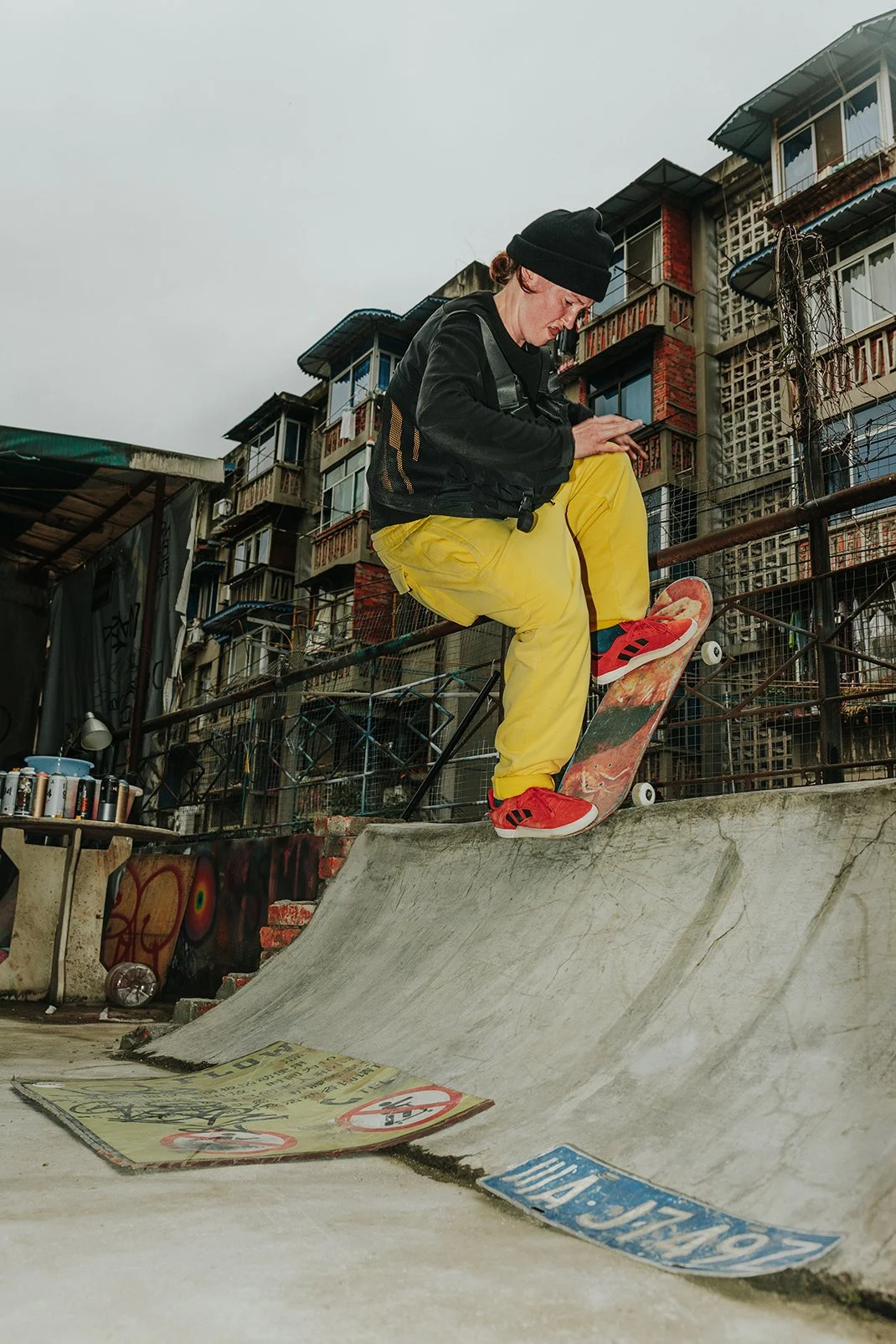 In reality, for this shoot we really just wanted to use our own lens to show what our lives are like to everybody, pure Chengdu street skating. Normally when planning for this sort of thing we try and figure out what’s the sickest way to do it, but because skateboarding is the root of all sickness all we had to do was our everyday. Even from the outset everything was tight, going from our DIY quarter pipe and ending at our friends’ Jam bar, packing everything in a little after midnight. For our next one we want to take everyone to the stranger and more mysterious parts of Chengdu.